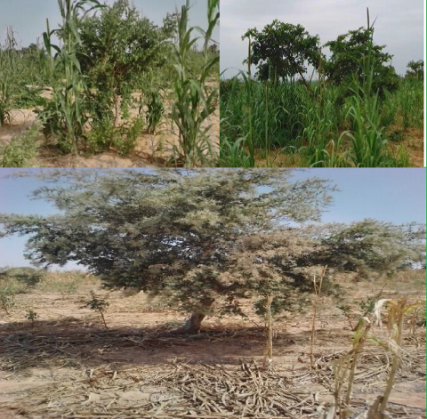 La présente étude a été conduite sur le site de Boussaragui, commune rurale de Chadakori (Maradi). Elle a pour objectif général d’évaluer les effets de la pratique de la Régénération Naturelle Assistée (RNA) sur la fertilité des sols cultivés dudit site. Pour ce faire, des enquêtes ont été menées et des analyses des sols faites sur des échantillons de sols prélevés dans les champs sous RNA, sous houppiers de Guiera senegalensis, Piliostigma reticulatum et au niveau de sol nu. Les résultats de l’étude montrent que les exploitations agricoles au niveau de Boussaragui comptent en moyenne 12 membres dont six (6) actifs agricoles et disposent 8 ha de superficie cultivable. Ainsi, à trois (3) ans de mise en oeuvre du projet IPSR 200583 du PAM-Niger (2014-2016), les bénéficiaires enquêtés dudit projet (10%), ont eu à réaliser dans leurs champs de cultures 131,46 ha de RNA. Cette technologie est caractérisée par une forte densité des ligneux (arbres - arbuste) allant de 86 pieds/ha au Nord à 160 pieds/ha au Sud du site, avec une moyenne de 119 pieds/ha pour le site. Avec un peuplement arbustif dont 87,95% des sujets ont une hauteur comprise entre 1 à 5 m, cette RNA présente une richesse floristique de 29 espèces ligneuses inventoriées dans les champs de cultures (14 familles), dont Guiera senegalensis et Piliostigma reticulatum, sont dominantes à 70,72 %. L’étude de sols de ce site, montre que la RNA ne présente pas des effets significatifs sur les caractéristiques physiques des sols, mais elle a des effets significatifs sur leurs caractéristiques chimiques, en particulier sur le pH, la Matière Organique, le phosphore, la somme des bases échangeables et la CEC.